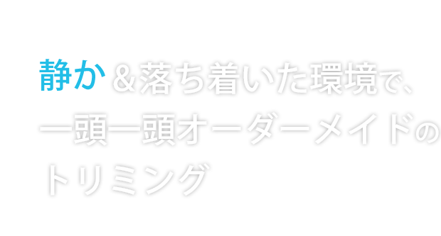 流れ作業ではなくワンちゃんの個性に合わせ、一頭一頭、優しくトリミングします。